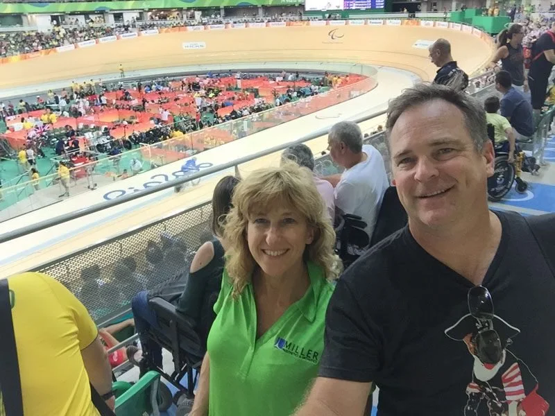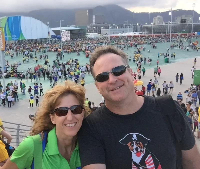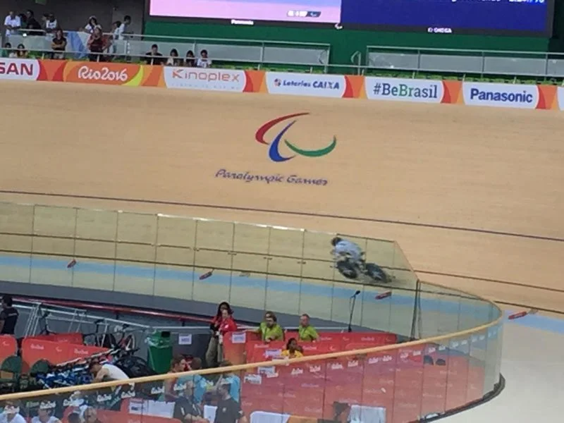 Olympic Park is massive. There is an open space in the center of the eight huge stadiums where people can purchase food and eat at picnic tables. We were starving, so we ate first and then headed up the steps to the Rio Olympic Velodrome for Cycling.