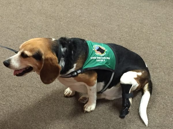 Bob’s official therapy dog wears a vest that says “All Wounds Aren’t Visible”. This pertains to the effects of PTSD, common among combat veterans. The Millers are proud to be able to help Louie continue his therapy with Bob, who served our country in Vietnam.