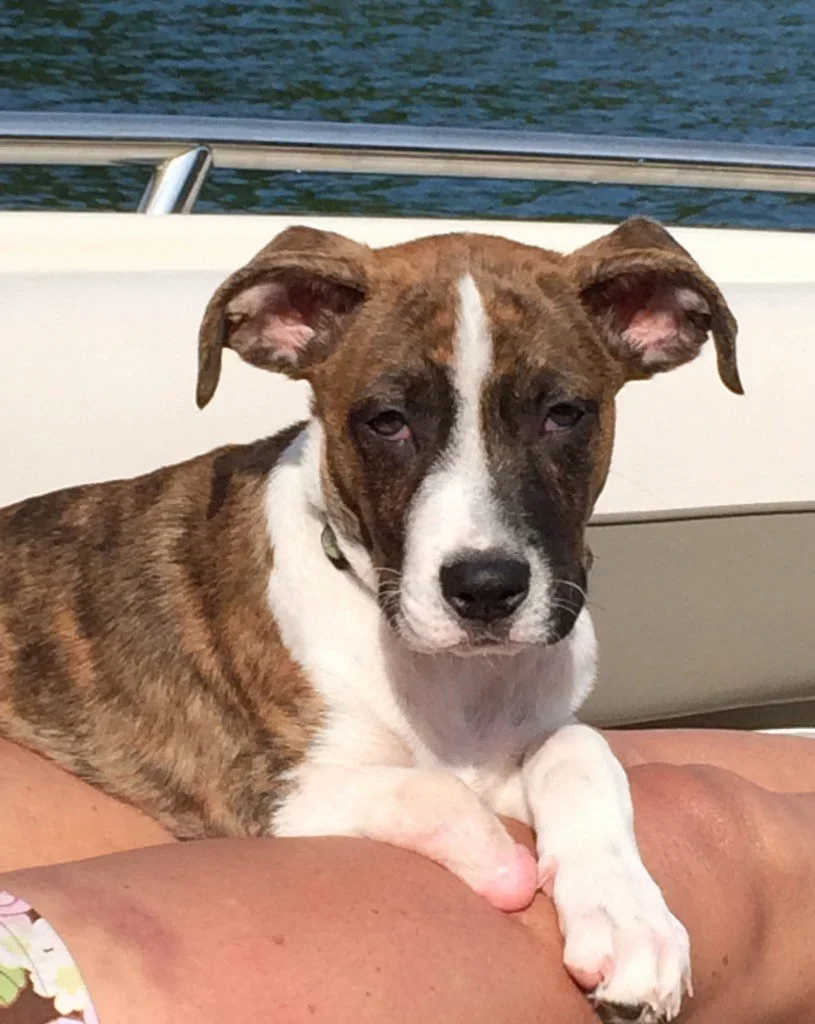A prosthetist in Chattanooga fitted the amputee puppy with his first artificial leg and then began searching for a permanent home while the puppy waited in a foster home to be rescued. Enter Mark Miller, a certified/licensed prosthetist/orthotist who answered the Chattanooga prosthetist’s appeal. Once the Millers were approved to adopt the puppy, the local shelter arranged transportation to Wytheville, VA, where Nancy was waiting to take the Millers’ new puppy to meet Mark and their son Alex and enjoy a weekend outing at Summersville Lake in Summersville, WV. “We spent the next two days boating, camping and getting to know our new puppy, Keating,” Nancy said.